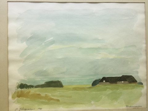 Jørgen Jørgensen (20 årh): Parti fra Tøndermarsken 1986. Akvarel på papir. Sign.: J. Jørgensen 1986 Betegnet - Tøndermarsken. 37x47 (51x71)