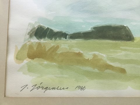Jørgen Jørgensen (20 årh): Parti fra Tøndermarsken 1986. Akvarel på papir. Sign.: J. Jørgensen 1986 Betegnet - Tøndermarsken. 37x47 (51x71)