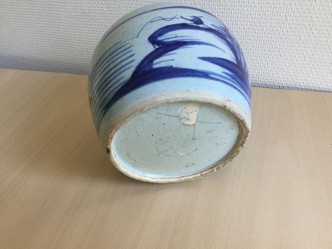 Gammel Jingerjar uden låg. Kina porcelæn med blå dekoration. 19/20 årh. Højde 16 cm - Diameter 13 cm. Enkelte små defekter.