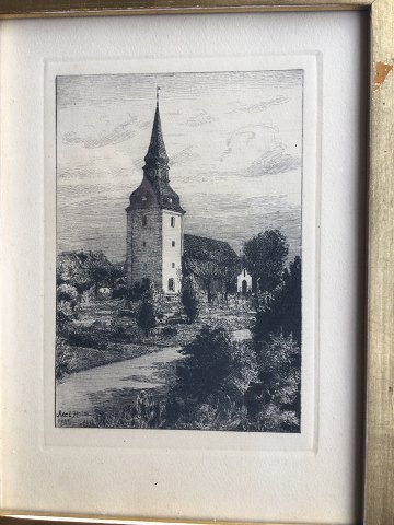Axel Holm (1861-1935): Marstal Kirke 1922. Radering på papir. Sign.: Axel Holm 1922 ( i trykket) 20x15 (23x18)