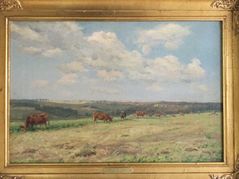 Bagpå blindramme: "Landskabet Hørsholm Mark 1905 og Mark og Køer gennemarbejdet 1908 Godf. Chr."