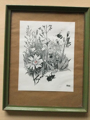 Motivet med snegl og motivet med bille har jeg også med anden indramning.