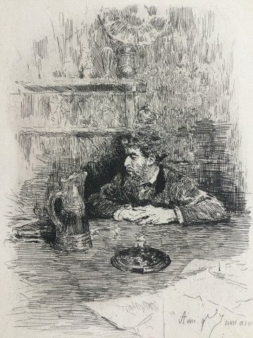 Mariano Fortuny y Marsal (1838-74): Portræt af kunstmaleren Eduardo Zamacois y Zabala (1841-71). Radering på papir. Sign.: Fortuny (i trykket) 18x13 (26x23)