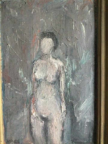 Henning Persson (1921-98): Nøgen kvinde 1966. Olie på lærred monteret på plade. Sign.: HP 66. 35x23 (43x31)
