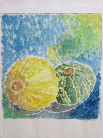 Charlotte Fabricius (20 årh): Græskar 1993. Farvelitografi på papir. Sign.: Charlotte Fabricius '93. 34x26 (50x40)
