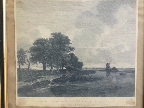 William Ellis (1747-1810): Landskab med mølle. Kobberstik på papir. Efter maleri af Salomon van Ruysdael (1602-70). Ellis sculpt - Rysdall pinx. 32x35 (42x46)