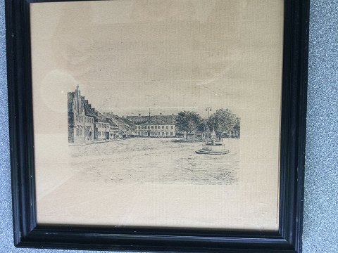 N.C. Thorn (20 årh): Parti fra Torvet 1925 Radring på papir. Sign.: N.C. Thorn 1925 ( i trykket). Indrammet 27x29
