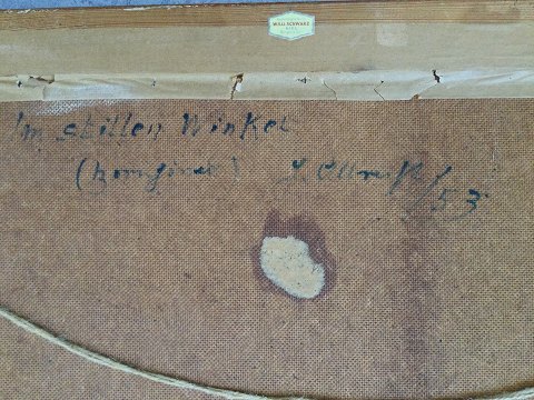 Helmut Albrecht (1909-99): Gårdeksteriør 1953 "Im Stillen Winkel". Olie på plade. Sign.: Helm. Albrecht 1953. Tidligere handlet hos Kunsthandler Willi Schwarz, Kiel. 54x49 (63x58)