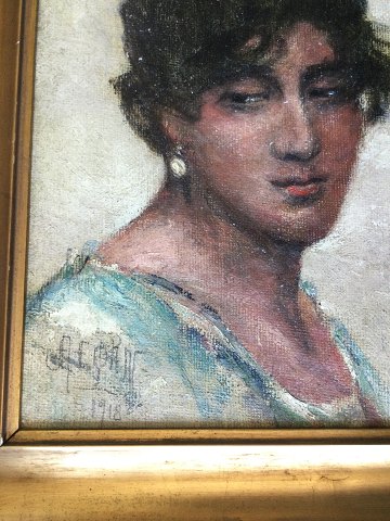 Axel E. Ørn (1880-1965): En Italienerinde 1918. Olie på lærred. Sign.: A.E. Ørn 1918 Bagpå - "Italienerinde Axel Ørn" 37x28 (49x40)
