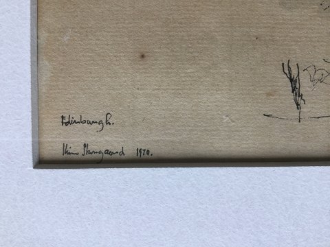 Joakim Anthony Skovgaard (1927-2008): Parti fra Edinburgh 1970. Tusch på papir. Sign.: Kim Skovgaard 1970 13x20 (27x34)