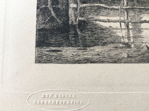 Otto Haslund (1853-1917): Piletræer ved en indsø 1865. Radering på papir. Sign.: Otto Haslund (i trykket) Betegnet - Ved en indsø 1865 Uden ramme DDRF 1870 Bladet måler 29x23 - trykfladen 12½ x 13 27121