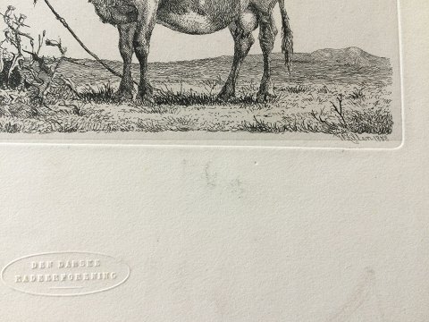 Johannes Vilhelm Zillen (1824-70): En ko på marken 1858 Radering på papir. Sign.: JV.Zillen 1858 DDRF 1875 Uden ramme. Bladet måler 27x36 (trykfladen 7x12) 27121