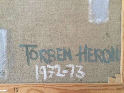 Torben Heron (1939-2019): Portræt af Tyran med okkerfarvet skjorte 1973. Olie på lærred. Sign.: Torben Heron 1972-73 (bagpå lærred) 50x61 (52x63)