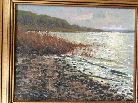 Gunner Bundgaard (1920-2005): Kystparti. Olie på lærred. Sign.: G. Bundgaard 24x30 (39x45) Gunnar Bundgaard