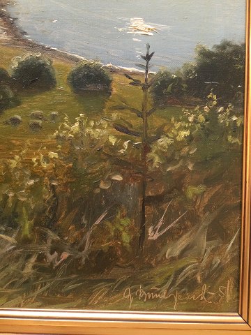 Gunner Bundgaard (1920-2005): Udsigt fra Knudshoved (Raget) ved Mariager 1951 Olie på lærred. Sign.: G. Bundgaard 51 69x51 (79x61) Gunnar Bundgaard