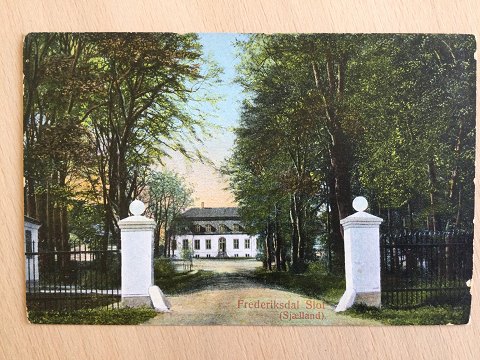 2 postkort. År ca. 1900-10. Begge farvetryk. Frederiksdal Slot i Lyngby. Marienborg på Møn. Begge måler ca 14x9