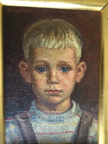 Otto Braschler (1909-85): Portræt af dreng. Olie på lærred. Sign.: Braschler Bagpå - "Gefirmisst" (Bekræftet). 32x22 (36x26) 7522