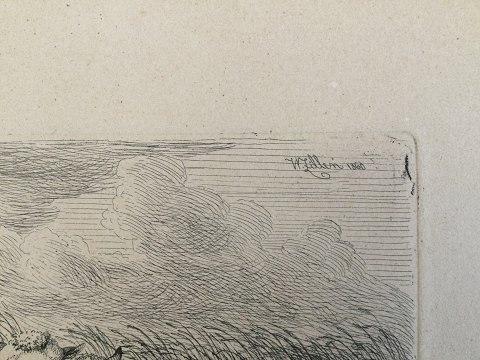 Johannes Vilhelm Zillen (1824-70): Får på marken 1860 Radering på papir. Sign.: W. Zillen 1860 (i trykket) Uden ramme. Bladet måler 27x34 - beskåret (trykfladen 13½ x 18) 21622