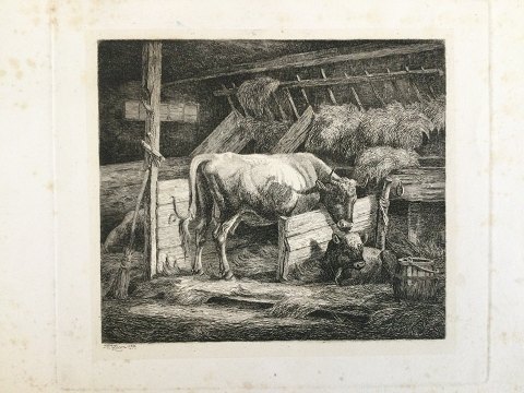 Johannes Vilhelm Zillen (1824-70): En hund hvilende på marken 1859. Radering på papir. Sign.: W. Zillen 1859 (i trykket) Uden ramme. Bladet måler 28x36 (trykfladen 18½x21) Plettet/snavset. 21622