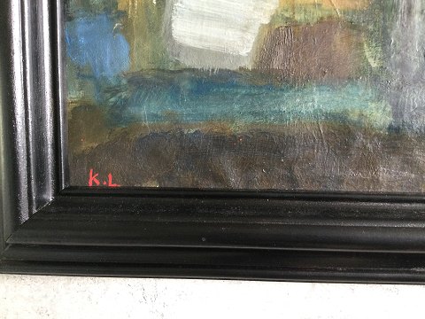 Knud Laursen (1924-2015): Huse. Olie på lærred. Sign.: K.L. 34x58 (44x68) 27622