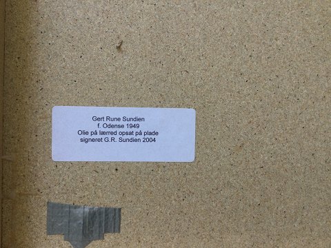 Olie på lærred monteret på hvidmalet plade.