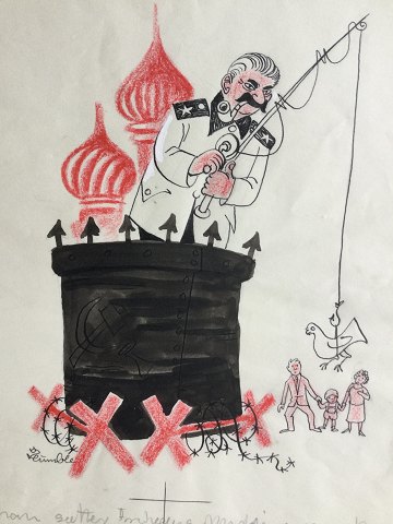 Satirisk tegning af Stalin lignende politiker på Stemmefiskeri.