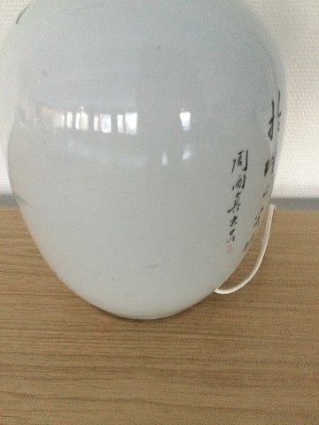 Stor kinesisk porcelæns lågkrukke omlavet til bordlampe.
