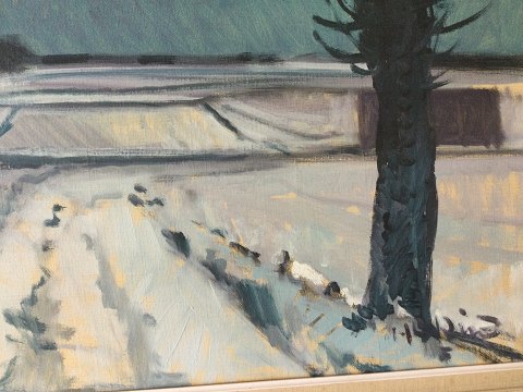 Knud Horup (1926-73): Vinterlandskab med stynede træer. Olie på lærred. Sign.: Horup 60x70 (68x78)
