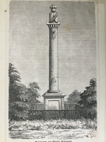 Ubekendt kunstner (19 årh): Monoment på Oddens Kirkegård til minde om Linjeskibet Prinds Christian Frederiks forlis ved Sjællands Odde 22/3 1808. Xylografi på papir 1898, 19x12 Uden ramme. 10623