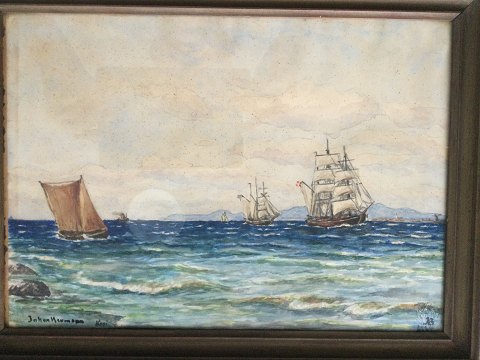Axel Bülow (20 ċrh): Marine. Akvarel pċ papir. Kopi efter Johan Neumann (1860-1940) 27x38 (31x42)