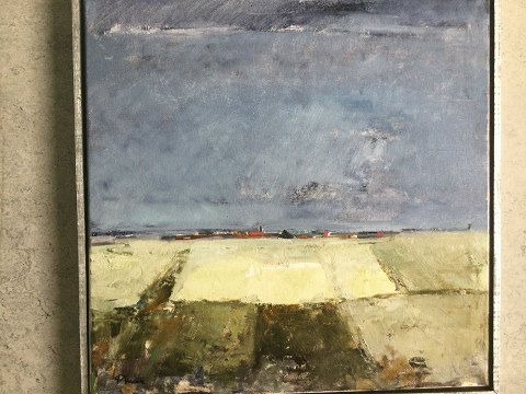 Peter Mock (født 1943): Vestjysk landskab. Olie på lærred. Sign.: P. Mock 50x50 (52x52)