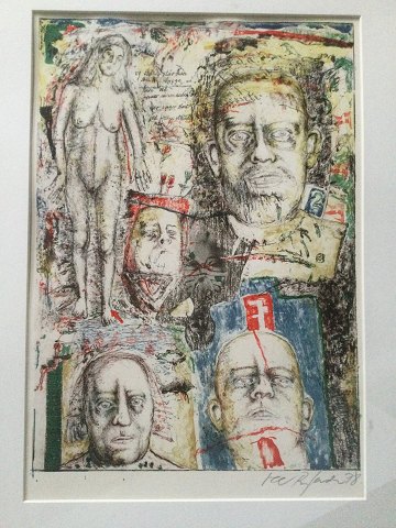 Komposition med ansigter og nøgen kvinde "Stadig står hun som en skygge...." 1978.