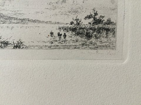 Louise Ravn-Hansen (1849-1909): Himmelbjerg Søen Radering på papir. Sign.: Louise Ravn-Hansen (i trykket). Uden ramme. Bladet måler 26x34- pladen måler 4½ x 12 25323