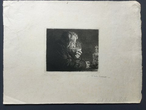 Cilius Andersen (1865-1913): Mand der drikker kaffe. Radering på papir. Sign.: Cilius Andersen Uden ramme Plademål (11½ x 14) - Bladet måler 25x33½ 13224