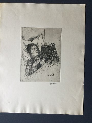 Jane Muus (1919-2007): Syg, læsende kvinde 1941. Radering på papir. Sign.: J. Muus (bly) samt Muus (spejlvendt i trykket) DDRF 1941. Uden ramme. Plademål 22x16½ - Arkets mål 44½ x 35 13224