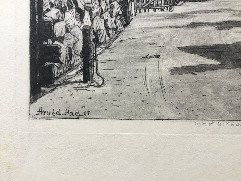Arvid Aae (1877-1913): Landsbygade Bornholm 1907. Radering på papir. Sign.: Arvid Aae 17 (i trykket). Uden ramme. Pladens mål 18x24 - Arkets mål 33x45 13224