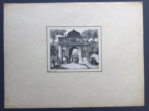 Ubekendt kunstner (19 årh): Nørreport - Bygget af HM Kong Christian IV i 1671 og nedrevet i 1857. radering på papir. usigneret Betegnet - Nørreprt. Uden ramme. Plademål (8½ x10½) - Arkets mål 22½ x 29½