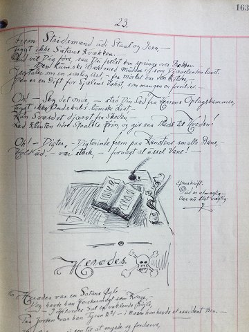 Hans Jørgen Korn (1888-1963): Håndskrevet bog omhandlende kunstnerens tanker og Gudstro med maser af tegninger og vignetter.