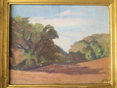 Hjalmar Matthiessen (1880-1955): Landskab. Olie på lærred. Sign.: Hj. M. Bagpå blindramme - Hjalmar Matthiessen. 26x33 (33X40) 25224