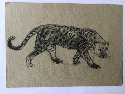 Torkil Norél (1922-2009): Gående leopard. Kul/bly på papir. Sign.: usigneret Uden ramme 21x30 5924