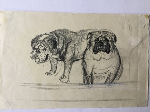 Torkil Norél (1922-2009): 2 Bulldogs Kul/bly/Tusch pĺ papir. Sign.: usigneret Uden ramme 20x31 5924