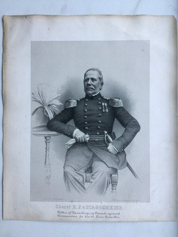 Betegnet - "Oberst E.F. v. Staggemeier - Ridder af Dannebroge og Dannebrogsmand - commandeur for den 11te Linie Bataillon"