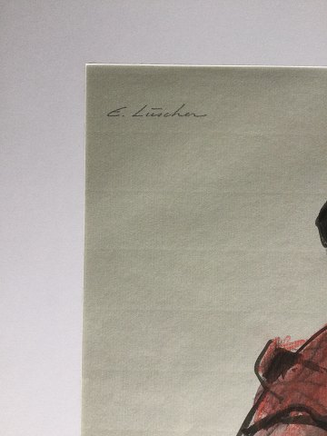 E. Lüscher (20 årh): Stående kvinde i overfrakke. Akvarel/pastel på papir. Sign.: E. Lüscher. Uden ramme men med passepartout. Mål 47x30 - Med passepartout 59x42 26624