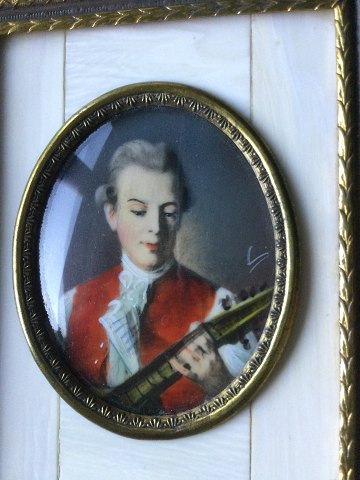 Indrammet i smukke rammer af messing og ben.