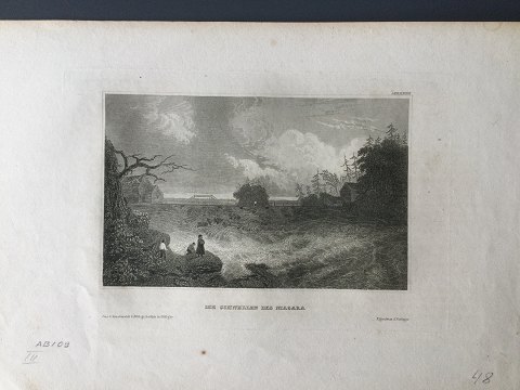 Ubekendt kunstner (19 årh): Parti fra Niagara Usigneret Betegnet "Die Schnellen des Niagara" Uden ramme. 18x27 10623