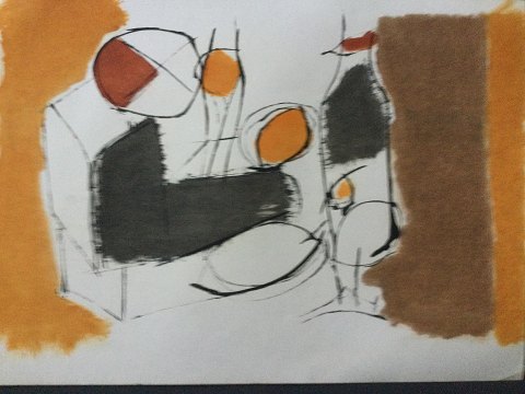 Litografier med efterbehandling af akvarel og farvekridt på papir.