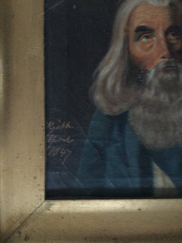 Ubekendt kunstner (19 årh): Portræt af herre med langt skæg og hår 1847. Olie på lærred. Usigneret. Betegnet - Kjøbenhavn April 1847 21x21 (30x30) 27324