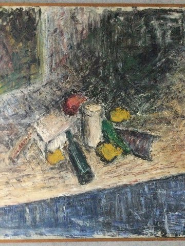 Kai-Erik Petersen (født 1932): Nature morte Akryl på lærred. Sign.: K.E. Petersen (bagpå lærred). 99x99 (101x101)