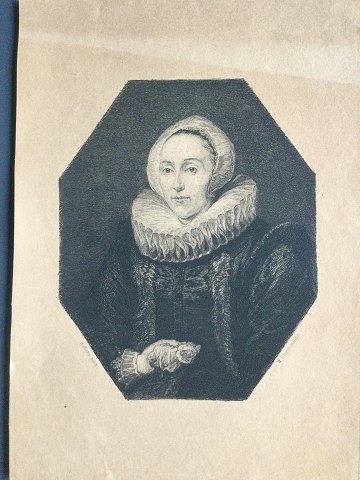 William Unger (1837-1932): En Dame med Rose 1886. Radering på papir, Efter maleri af Peter Paul Rubens. Sign.: Rubens pinx / W. Unger sculps Lidt falmet udenfor pladen Uden ramme 23x16 3122