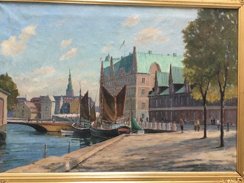 Motiv fra København med Børsen, C.F. Tietgens Hus og Vor Frelser Kirkes spir i baggrunden - set fra Børsgade.